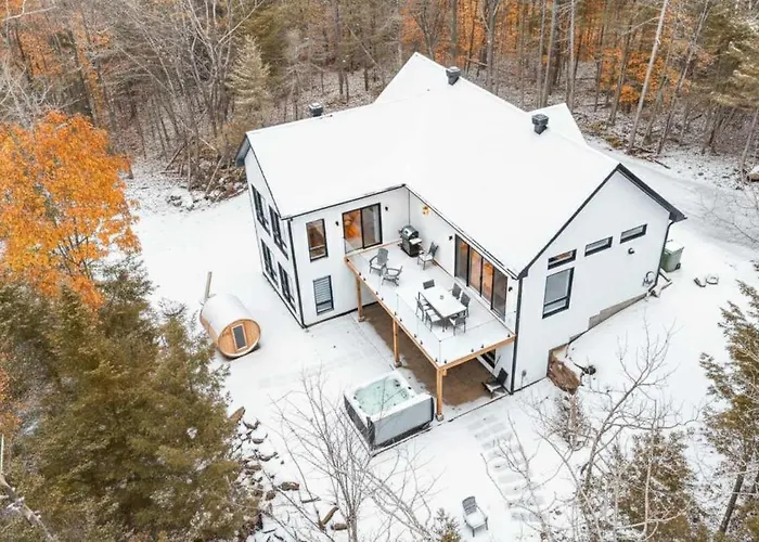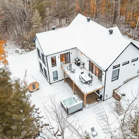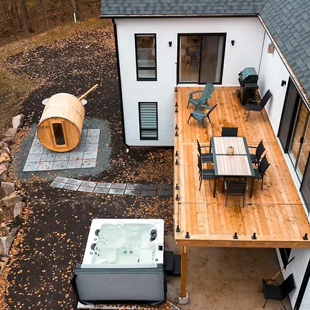 Situated approximately 10 minutes by car from the Greek Orthodox Monastery of the Virgin Mary of Consolation, New Chalet With Spa And Sauna - Le Naturozen Brownsburg features a patio with views of the mountain.